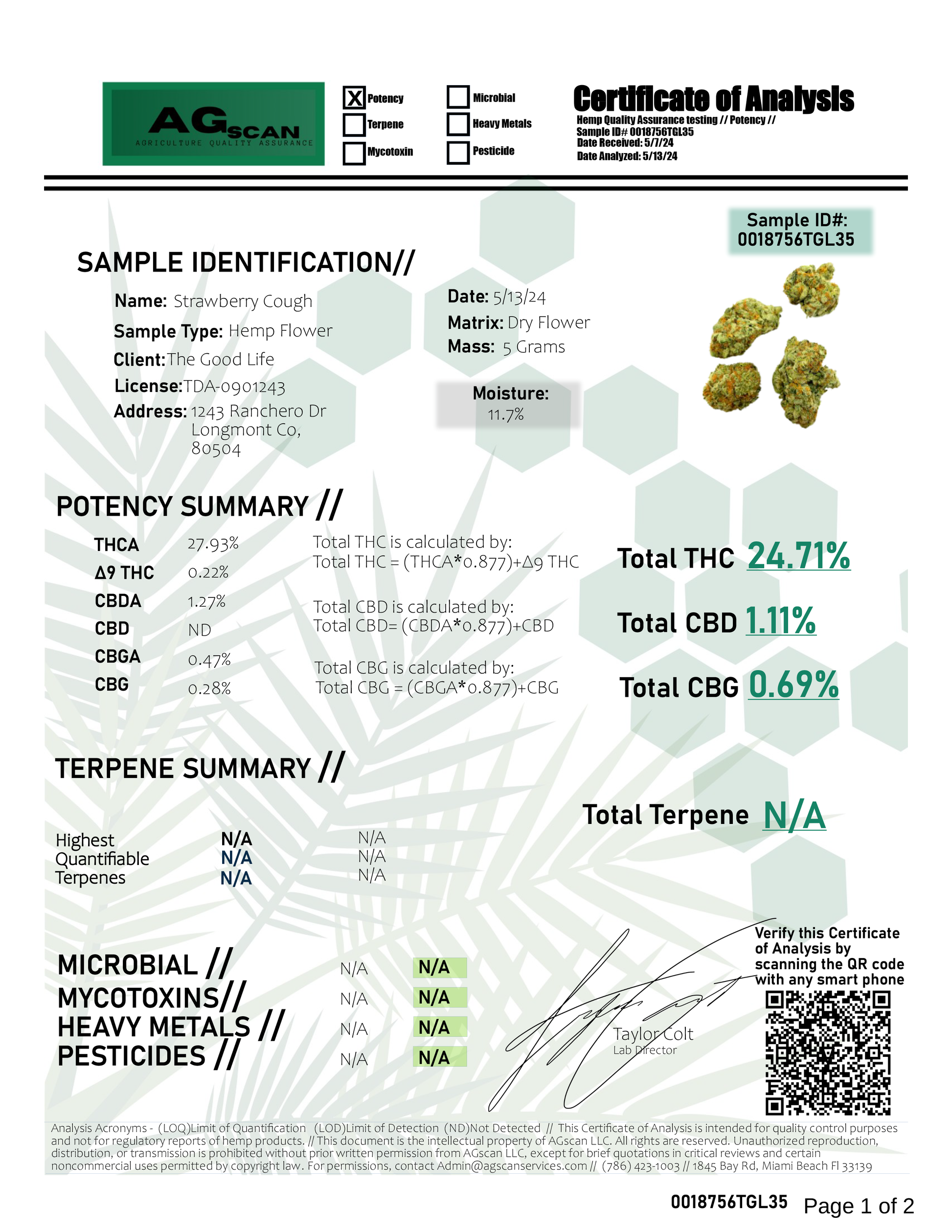 Experience the sweet and skunky Strawberry Cough, a potent Sativa strain with mysterious genetic origins. Let the berry flavors and uplifting effects leave you with a euphoric buzz, perfect for relieving stress. With 27% THCA, even veteran users will feel the elevated effects!
